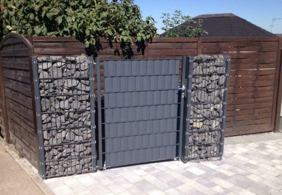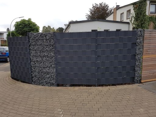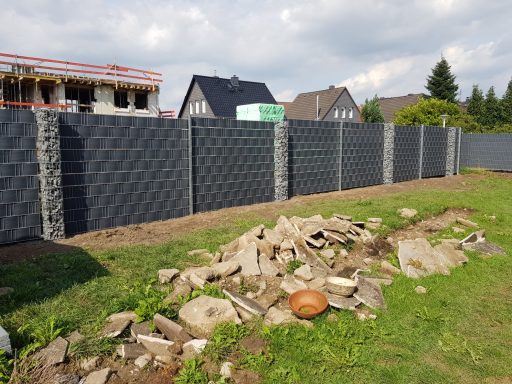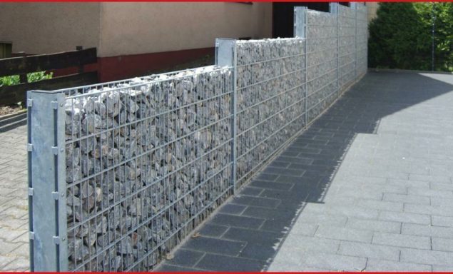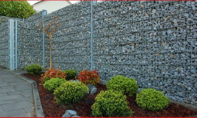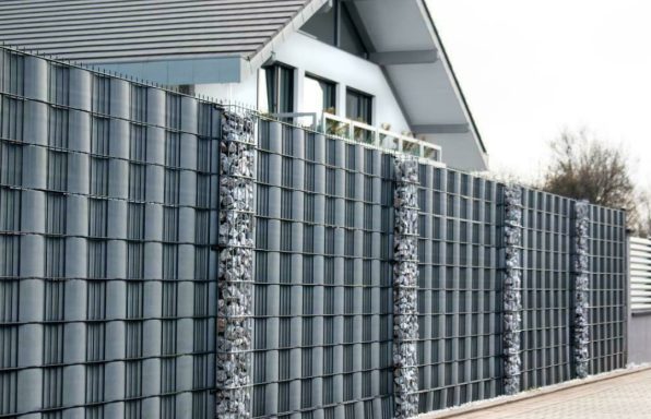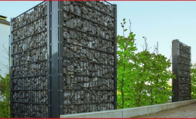 Der mit Steinen gefüllte Drahtgitterkorb ist eine äußerst dekorative Alternative zu einfachen Metallzaun. Die Montage ist dank des leicht zu verbauenden Pfostens auch für Laien problemlos realisierbar, die Wirkung der Gabionenwand ist jedoch immens.