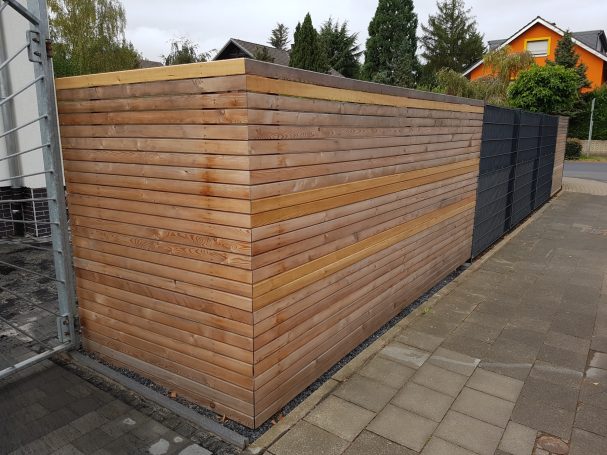 Bei WPC handelt es sich um eine Mischung aus Naturfasern, Kunststoff und Additiven, die zu sehr stabilen und verwitterungsfreien Zaunelementen verarbeitet wird. So entsteht eine natürliche Oberfläche, die man sehr gleichmäßig färben kann.