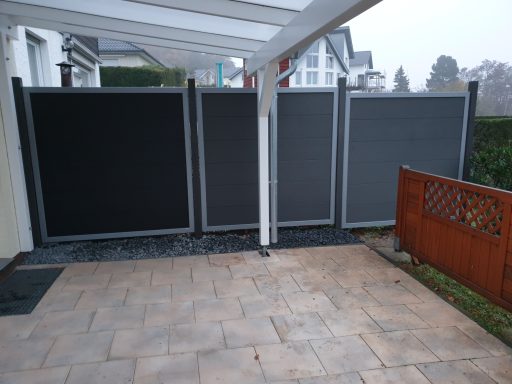 Ergänzend zu den Sichtschutzelementen gibt es auch Anschluss-Elemente, die so die Terrasse elegant beenden oder den perfekten Übergang in den Garten schaffen.